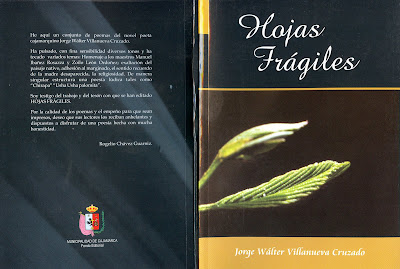"HOJAS FRÁGILES", de Jorge Villanueva, se inicia con dos poemas laudatorios; uno dedicado a retratar la inolvidable imagen del poeta Manuel Ibáñez Rosazza, y el otro orientado a relievar la memorable irradiación intelectual del ensayista Zoilo León Ordóñez.